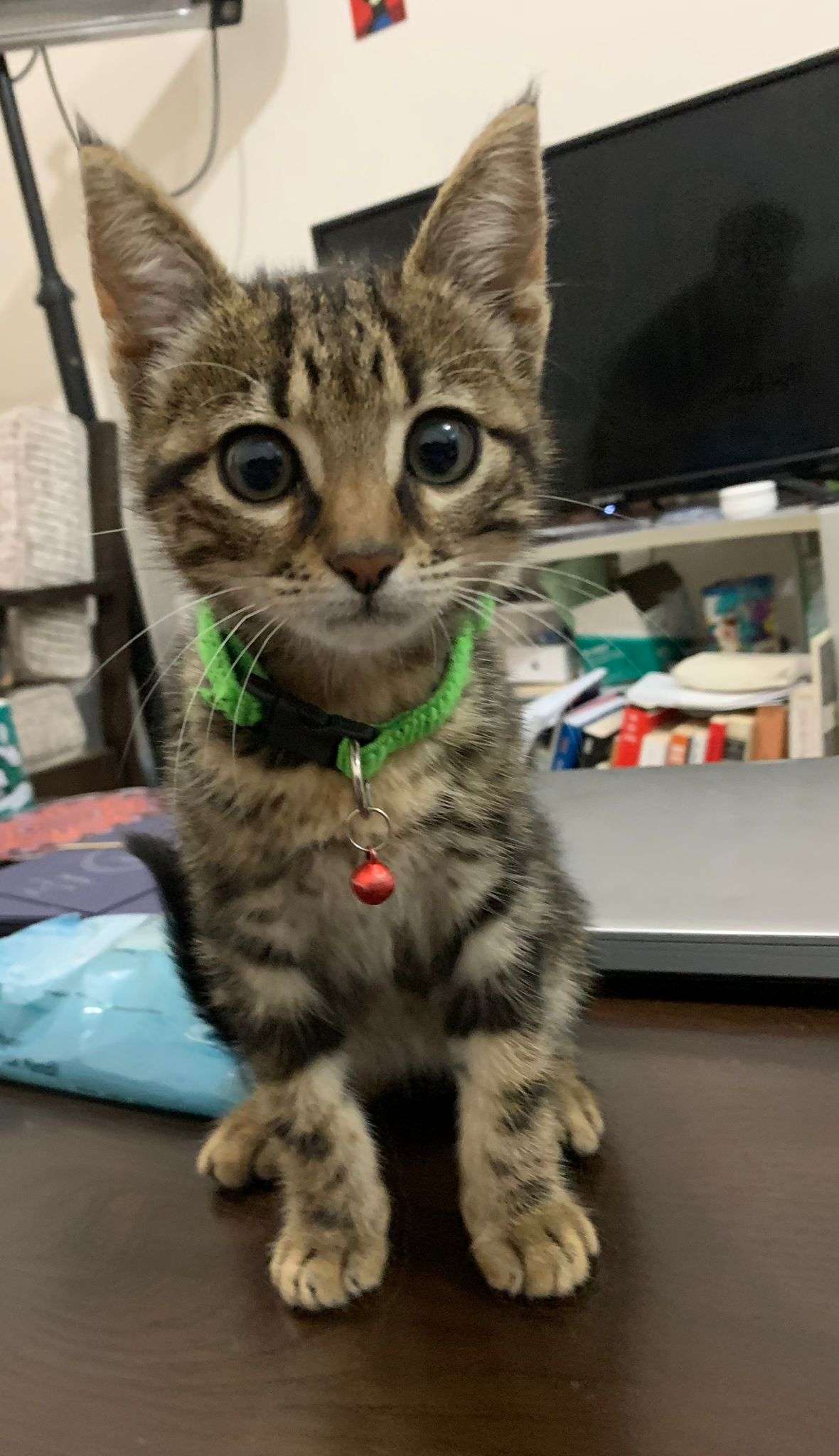 Yeşil tasmalı Yavru Tekir kedi